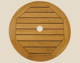 Made from Teak harvested in plantations in Indonesia. The best available teak on the market (A Grade) free of knots and uniformity in grain and color. Kiln dried and fully machine made with mortise and tenon joints for a tight fit. The high content of oil in our Teak protects the furniture from the outdoor elements no matter what climate you might live in and will ensure you a lifetime of enjoyment with your furniture. Diametereter: 23.5". Color: Natural. Dimensions: 23"W x 1"H. Usage: Interior/Exterior.
